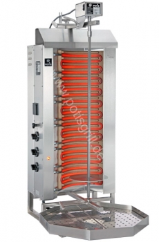 Sechs keramische Reflektoren und sechs Rohrheizkörper sorgen mit 9,0 kW Leistung für gleichmäßige und effiziente Hitze. Der Grill fasst bis zu 50 kg Fleisch bei 700 mm Höhe und eignet sich perfekt für den professionellen Dauereinsatz.
